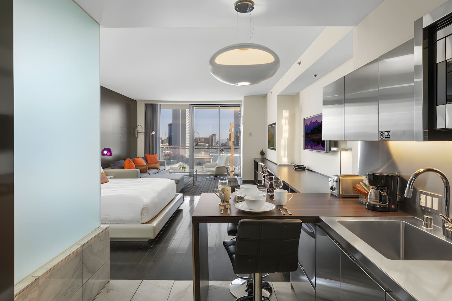Palms Place is connected to the Palms Hotel and Casino. You have access to the best restaurants, sports betting, casino, spa and more. You will have access to the Latest and Best Pool Club "Kaos"